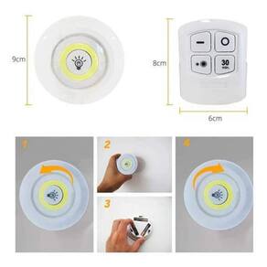 Produto excelente para ser instalado em interiores residenciais ou comerciais como cozinha, escritório, armário, closet, balcão, prateleira, garagem, porão ou locais escuros semelhantes, onde você pode precisar de alguma iluminação forte por alguns minutos de vez em quando, podendo ser controlada facilmente através do controle remoto. 2 modos de iluminação: controle remoto permite que o brilho da luz seja ajustado em 2 níveis e controle de tempo para desligar a luz em 30 minutos sem fio a uma distância de até 4 metros. Você também pode ligar ou desligar a luz do disco, tocando no interruptor na lente das luzes.