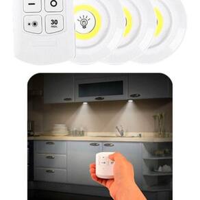 Kit 3 Lampada Luminaria Led Spot Sem Fio Controle Remoto Voltagem: Pilha Cor: Branco