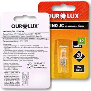 Kit 3 lampadas halogena bipino jc 20w 12v g4 - ourolux Lampadas halogena bipino jc 20w 12v g4 - ourolux Descrição do produto Transforme seu espaço com a potente lâmpada halógena bipino de 20w e 12v jc. Ideal para iluminar ambientes como salas, cozinhas e áreas externas, esta lâmpada oferece uma luz brilhante e clara, perfeita para destacar detalhes e criar atmosferas aconchegantes. Características principais - potência: 20w para uma luminosidade intensa. - voltagem: funciona em 12v, ideal para sistemas de baixa tensão. - base: bipino jc g4, fácil de instalar em diversas luminárias. - durabilidade: vida útil prolongada em comparação com lâmpadas incandescentes. - fabricante: ourolux - : 3 meses - tamanho do produto: 2,5cm altura x 5mm de largura - cor da luz: 3000k - validade: indeterminada - forma da lampada: vela - soquete: g4 ou gy6.35 - composição: metal, vidro e gás halógeno. Vantagens - proporciona uma luz clara e vibrante, ideal para realçar a beleza de seus espaços. - consumo eficiente de energia, ajudando você a economizar na conta de luz. - design compacto que se adapta perfeitamente a spots de iluminação e luminárias decorativas. Observações: produto com tensão de 12v. Não utilizar em lugares que possuem tensão 100-240v. Sugestão de uso: Oficinas mecânicas, baterias e embarcações. / utilizar em ambientes cobertos. Marca: Não Informado
