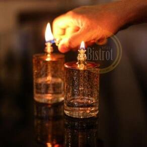 Decore seu ambiente da melhor forma e qualidade Lamparina de vidro grosso ultra resistente para Fluido Bistrot. Pavio de vidro eterno, nunca precisa trocar. Altura da chama regulável. Não solta cheiro nem fumaça. Seguro para qualquer ambiente Testado e aprovado pelos melhores restaurantes do Brasil
