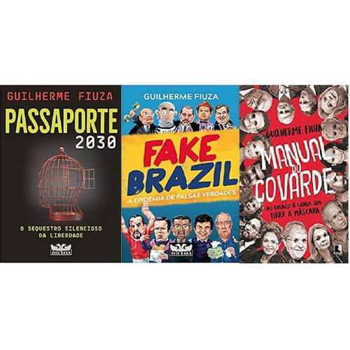Kit 3 livros guilherme fiuza manual do covarde + fake brazil + passaporte 2030 todos os livros sao novos, narração manual, capa comum brochura normal