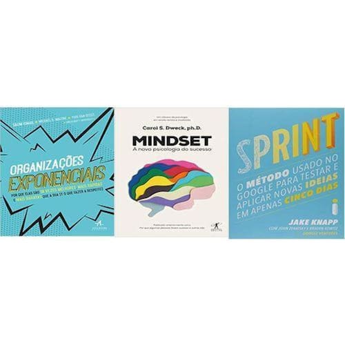 Kit 3 livros Organizações Exponenciais + Sprint + Mindset Organizações Exponenciais + Sprint + Mindset Organizações exponenciais: por que elas são 10 vezes melhores, mais rápidas e mais baratas que a sua e o que fazer a respeito Capa comum - Edição padrão, 4 fevereiro 2019 Edição Português por Michael S. Malone Autor , Salim Ismail Autor , Yuri Van Geest Autor , & 1 mais Editora : Alta Books; 1 edição 4 fevereiro 2019 Idioma : Português Capa comum : 288 páginas ISBN-10 : 8550807141 ISBN-13 : 978-8550807140 Dimensões : 16 x 2 x 23 cm Salim Ismail é um homem apaixonado por negócios, empreendedorismo e tecnologia. Ele é um estrategista de tecnologia, engenheiro de software, e empresário de sucesso. Finalista do livro de negócios do ano pela Independent Publishers Association e figurou em várias listas de best-sellers de negócios. Bem-vindo à época das mudanças exponenciais, o melhor momento para se viver. É o momento em que a concorrência não é mais a empresa multinacional no exterior, mas o cara em uma garagem no Vale do Silício ou em Bandra Mumbai , utilizando as mais recentes ferramentas online para projetar e imprimir a partir da nuvem sua última criação. Essas empresas estão cada vez mais rápidas, contam com pessoas cada vez mais capazes de se reinventar a uma velocidade ímpar. São pessoas e empresas extremamente criativas. Como aproveitar todo esse poder criativo Como construir uma empresa que seja tão ágil, hábil e inovadora como as pessoas que farão parte dela Como competir nesse acelerado mundo novo Como se organizar para expandir A resposta é a organização exponencial. Não temos escolha, porque em muitos setores a aceleração já está em andamento. Peter Diamandis usa o conceito dos 6 Ds: digitalizado, disfarçado, disruptivo, desmaterializar, desmonetizar e democratizar. Qualquer tecnologia que se torna digitalizada primeiro D entra em um período de crescimento disfarçado. Sprint: O método no Google para testar e aplicar novas ideias em apenas cinco dias Capa comum - 27 março 2017 Edição Português por Jake Knapp Autor , John Zeratsky Autor , Braden Kowitz Autor , & 1 mais Editora : Intrínseca; 1 edição 27 março 2017 Idioma : Português Capa comum : 320 páginas ISBN-10 : 8551001523 ISBN-13 : 978-8551001523 Dimensões : 20.8 x 13.6 x 1.8 cm Método criado pelo designer Jake Knapp no período em que ele trabalhava no Google, era para tudo na empresa, do aperfeiçoamento do mecanismo de buscas ao Google Hangouts, com o foco em desenvolver e testar ideias em apenas cinco dias. Knapp se juntou mais tarde a Braden Kowitz e John Zeratsky no Google Ventures, braço da companhia dedicado ao investimento em novos negócios, e juntos eles conduziram e completaram mais de cem sprints em empresas de telefonia, e-commerce, saúde, finanças e muito mais. Mindset: A nova psicologia do sucesso Capa comum - Edição padrão, 24 janeiro 2017 Edição Português por Carol S. Dweck Autor , S. Duarte Tradutor Editora : Objetiva; 1 edição 24 janeiro 2017 Idioma : Português Capa comum : 312 páginas ISBN-10 : 8547000240 ISBN-13 : 978-8547000240 Dimensões : 23 x 16 x 1.8 cm Carol S. Dweck, ph.D., professora de psicologia na Universidade Stanford e especialista internacional em sucesso e motivação, desenvolveu, ao longo de décadas de pesquisa, um conceito fundamental: a atitude mental com que encaramos a vida, que ela chama de mindset, é crucial para o sucesso. Dweck revela de forma brilhante como o sucesso pode ser alcançado pela maneira como lidamos com nossos objetivos. O mindset não é um mero traço de personalidade, é a explicação de por que somos otimistas ou pessimistas, bem-sucedidos ou não. Ele define nossa relação com o trabalho e com as pessoas e a maneira como educamos nossos filhos. É um fator decisivo para que todo o nosso potencial seja explorado.
