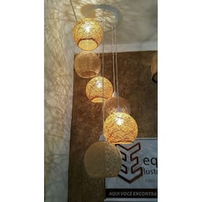 Especificações técnicas e características: Marca: fabriluz Luminária artesanal rústica de sisal ou juta ou algodão em formato de globo/bola, lavável. Tamanho: 18 cm diâmetro Voltagem: 110/220 bivolt Comprimento do cabo: 1 metro Tipo de soquete: e27 Cor: bege