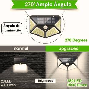 Kit 3 Luminária Solar Luz Refletor 100 Led Jardim com Sensor KIT COM 3 UNIDADES Luminária solar com detector de movimento e acendimento automático acionada pela intensidade de luz ambiente.Com autonomia de até 12 horas, grande intensidade de luz com 100 leds , é destinada a áreas externas já que é a prova d'água.Economia, praticidade e segurança em um mesmo produto.Esta luminária ativa quando anoitecer e permanece desligada ou ligada no modo baixo até o acionamento pelo sensor de movimento, sendo ideal para balizamento de caminhos, jardins, corredores, etc.POSSUI 3 MODOS:1 - Fica apagada e acende 100% do brilho com sensor de movimento por 15-30 segundos e depois apaga;2 - Fica acessa a noite com 50% do brilho e com sensor de movimento acende 100% do brilho por 15-30 segundos e depois volta nos 50%;3 - Assim que escurece, a luminária acende 50% do brilho o tempo todo até amanhecer.CARACTERÍSTICAS:- Material: ABS- Sensor de iluminação: 1,0 Watts- Sensor de luz Solar de Energia: 2,4 Watts, 600 lumens- Fonte de energia: Solar- 100LEDs- Potencia de iluminação: 20watts- Bateria: 5.5 V 1800 mah- Painel Solar: 5.5 V/1.0 W- Proteção em Nível: IP65- Distância de detecção: de 3 a 5 m- Autonomia de iluminação: 12 horas-Tempo de carregamento: 6 horas no sol- Produto a prova d'água- Tempo de vida do led: 50000 h - Tipo de instalação: Fixado Na Parede- : Botão- Sensor de movimento ângulo: 120- on / offDIMENSÕES X PESO:- Largura: 13.5 centímetros- Altura: 10 centímetros- Peso: 150gCONTEÚDO DA EMBALAGEM:- 3x Luminárias Solar com 100 Leds- 6x Parafusos- 6x BuchasGarantia do vendedor: 1 meses Marca: Não Informado