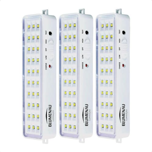 Kit 3 Luminárias de Emergência Blumenau 30 Leds Recarregável Bivolt