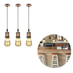 Kit 3 luminária pendente soquete bocal e27 com lâmpada led vintage formato pêra luz amarela Cor: bronze Kit 3 pendentes retro fio vintage com três lâmpadas formato pera