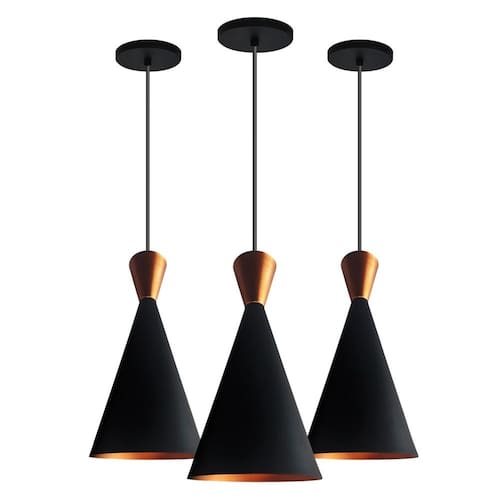 Lustre Pendente Modelo: New City Cor: Preto Com interior Cobre Medidas Aproximadas: Altura: 30 cm Diâmetro: 17 cm Canópla de teto: 12 cm Soquete e-27 plástico Material: alumínio Marca R.R.J.V Negócios O pendente acompanha 1 Um Metro de fio com altura ajustável. Marca: Não Informado Ean: 7893428139833
