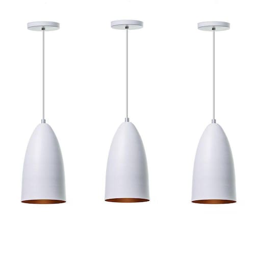Kit 3 Lustre Pendente Bala M Branco Alumínio Decoração