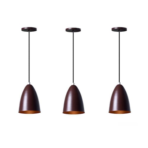 Kit 3 Lustre Pendente Bala P Marrom Alumínio Decoração