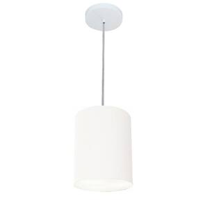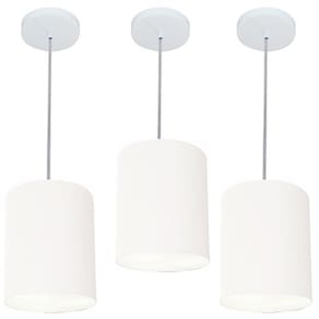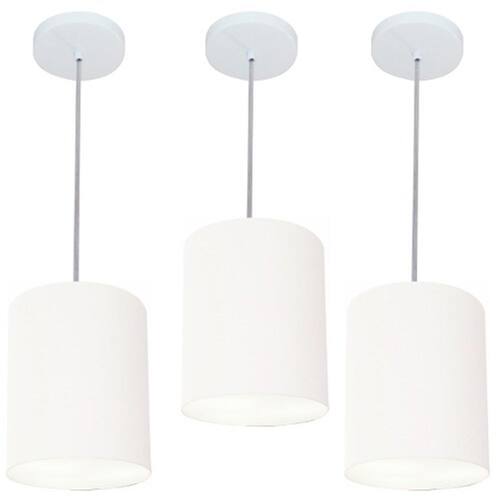 Kit-3 Lustre Pendente Cilíndrico Md-4012 Cúpula Tecido 18x25cm Branco
