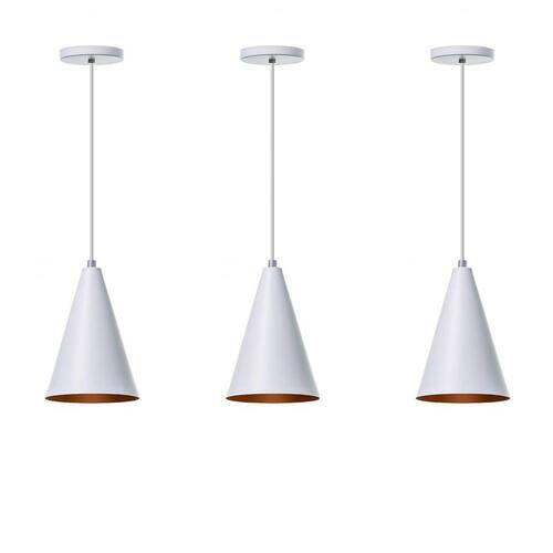 Kit 3 Lustre Pendente Cone P Branco Alumínio Decoração