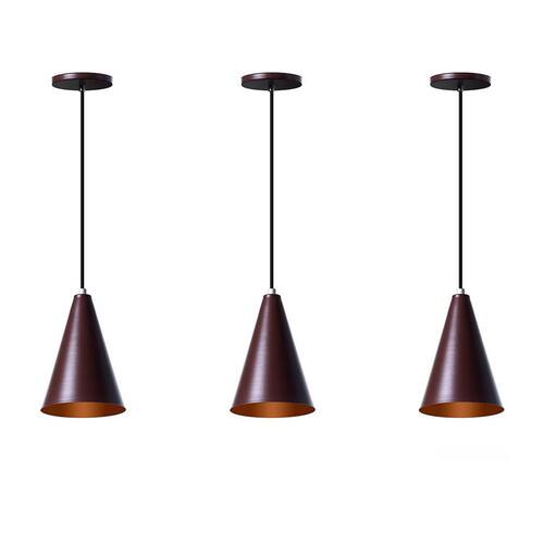 Kit 3 Lustre Pendente Cone P Marrom Alumínio Decoração