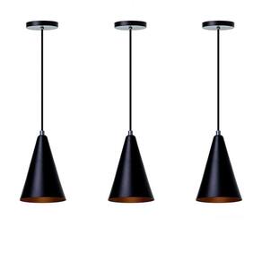 Kit 3 Lustre Pendente Cone P Preto Alumínio Decoração