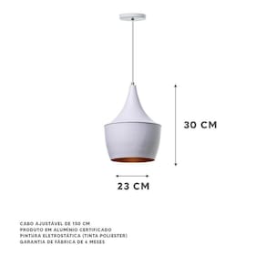 Kit Com 3 Lustre Pendente Interno Balão Branco Com CobreDeixe sua casa muito mais moderna e sofisticada com os pendentes da Ideallume. Produzido em alumínio, o produto não enferruja nunca. Ele é ideal para ser utilizada em áreas internas em cima da sua mesa, balcao gourmet, balcao da sua churrasqueira. Sua pintura eletrostática é extremamente resistente a maresia, o que confere extrema proteção e durabilidade ao item. Com esse produto você dará um toque de beleza que valoriza sua casa. Especificações Técnicas: Marca: Ideallume Modelo: BalãoFixação: TetoTipo de uso: Interno Pintura: Eletrostática - Tinta: microtextura poliéster Cor: Branco Com CobreMaterial : AlumínioVoltagem Do Pendente: Bivolt 110/220v Soquete: E27 Medidas L x A x D : 23 x 30 x 23 cm Lâmpada: Utiliza 1 lâmpada Não inclusa Conteúdo Da Embalagem: 03 Pendentes Balão + 3 Fios 1.5m +3 Canoplas