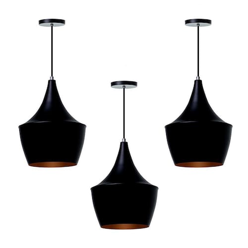 Kit Com 3 Lustre Pendente Interno Balão Preto Com Cobre