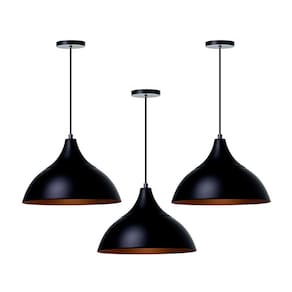 Kit 3 Lustre Pendente Panamá Preto Com Cobre Alumínio