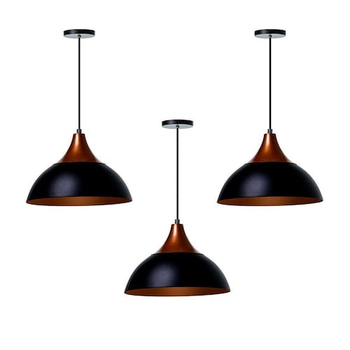 Kit 3 Lustre Pendente Panamá Preto Topo Cobre Alumínio