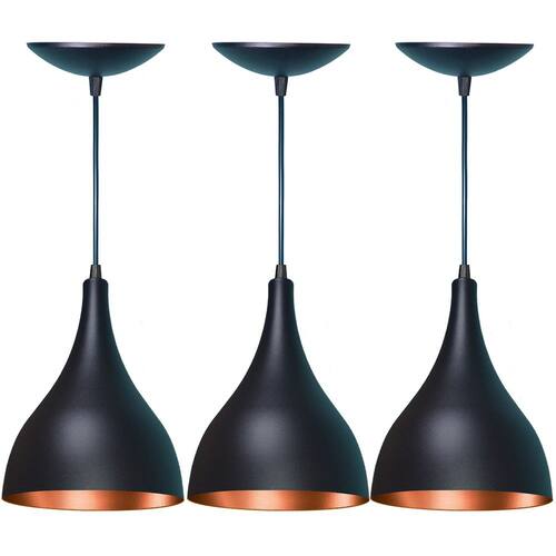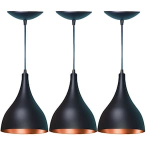 O Kit 3 Lustres Balcão Cozinha Americana Preta Fosca E Cobre é perfeito para incrementar a decoração da sua cozinha americana. Com sua estrutura moderna, elegante e sofisticada, ele traz um toque especial ao ambiente.