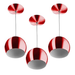 Kit 3 Lustres Pendente Bola Media Alumínio 23cm Cereja