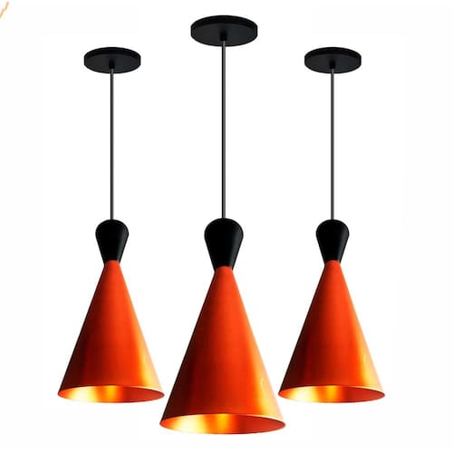 Kit 3 Lustres Pendentes Dixon New City Cobre Lustre Pendente Modelo: Dixon New City Cor: Cobre interno e externo copinho preto Medidas Aproximadas: Altura: 35 cm Diâmetro: 17 cm Canópla de teto: 12 cm Soquete e-27 plástico Material: alumínio O pendente acompanha 1 Um Metro de fio com altura ajustável. Anuncio Referente A 3 Pendentes Lâmpada não inclusa Marca: R.R.J.V. Negocios