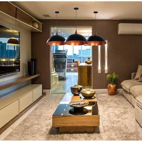 Kit 3 lustres Pendentes Meia Lua 40 cm com Chapéu Preto Com Cobre Lustre PendenteModelo: Meia Lua com ChapéuCor: Preto com CobreMedidas Aproximadas:Altura: 28 cmDiâmetro: 40cmCanópla de teto: 12 cmSoquete e-27 plásticoMaterial: alumínioMarca R.R.J.V NegóciosO pendente acompanha 1 Um Metro de fio com altura ajustável. Marca: Rrjv Negocios