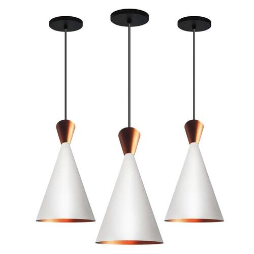 Kit 3 Lustres Pendentes Tom Dixon Branco New City Anuncio Referente A 3 Pendentes Lustre Pendente Modelo: Dixon New City Cor: Branca copinho cobre Interior Cobre Medidas Aproximadas: Altura: 35 cm Diâmetro: 17 cm Canópla de teto: 12 cm Soquete e-27 plástico Material: alumínio O pendente acompanha 1 Um Metro de fio com altura ajustável. Lâmpada não inclusa Marca: R.R.J.V. Negocios Ean: 7898970122319