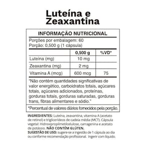 Kit 3 Luteína e Zeaxantina Ocean Drop Vegana - 60 Cápsulas Composição: - Luteína, Zeaxantina, Vitamina A acetato de retinol , triglicerídeos de cadeia média MCT . - Cápsula vegetal: Hidroxipropilmetilcelulose, carragenina, acetato de potássio.