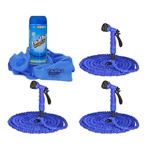 Kit 3 Mangueiras Magica 15 Metros Com Esguicho E Conectores + Toalha Mágica seca carroMangueira Magica. Compacta, flexível e super prática, a mangueira Magica alcança até 15 metros de comprimento de acordo com a pressão da água assim que ligada. A mangueira amplia 3x o seu tamanho e, ao desligar a água, ela encolherá em segundos, cabendo na palma da sua mão. É uma super mangueira flexível. Ela vem ainda com gatilho com 07 tipos de jatos, não torce, não dobra e não interrompe a água e é até 5x mais leve que uma mangueira convencional.Diferencial:material: O material utilizado neste produto atende perfeitamente as variações climáticas do nosso país, em qualquer estação do ano, não ressecando no inverno e não derretendo no verão.As outras importadas não suportam essa variação climática, pois contem menos Látex em sua composição.Aumenta 3x o tamanho assim que ligado a mangueira a águaNão Dobra facilmente, promovendo sempre a pressão continua da agua.O Gatilho com 07 posições de esguicho possui engate rápido em plástico além de diversas funções: Cone, Reto, Névoa, Plano, Vertical e Chuveiro.É só escolher o jato ideal e deixar na posição indicada pela seta que a sua mangueira estará pronto para todas as suas necessidades de uso com muita praticidade.Informações técnicas:- Cor: Azul- Tamanho da mangueira: 15 m- Tipo de mangueira: Flexível- É só escolher o jato ideal e deixar na posição indicada pela seta que a sua mangueira estará pronto para todas as suas necessidades de uso com muita praticidade.Peso aproximado: 600 gramas.Itens inclusos:- 03 Mangueira;- Gatilho com 07 tipos de jatos;- Engate para a conexão. Marca: Não Informado