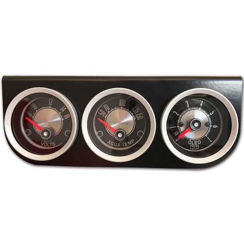 Kit com 3 Manômetros Modelo Mecânico para Ford Maverick com Layout Retrô. Composição do kit: Manômetro voltímetro; Manômetro temperatura de água elétrico; Manômetro pressão de óleo mecânico; Todos os manômetros acompanham luz de led verde; Kit de instalação AEROQUIP com adaptador para pressão de óleo mecânico; Sensor e adaptador para temperatura de água elétrico; Acompanha moldura e parafusos de fixação; Manual de instalação com informações; Mostradores são fabricados em CNC com material inox; Disponível somente no tamanho de 52mm com aro prata; Alto padrão de acabamento. Recomendamos que a instalação seja realizada por um profissional qualificado. : 3 meses Marca: PerformanceV8 Ean: 7999603056831