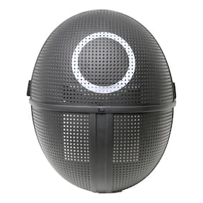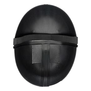 Máscara Round 6, inspirada na série de sucesso da Netflix, com qualidade superior de fabricação e acabamento na cor preta característica do personagem.