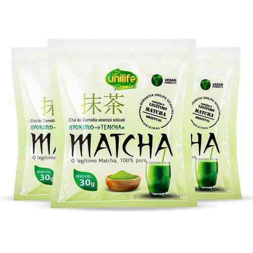 Kit 3 Matcha Puro Vegano Unilife 30G Solúvel