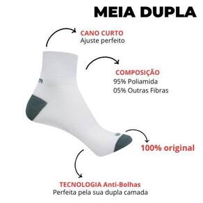 Kit 3 Meias com Dupla Camada Anti Bolhas Corrida Fitnes Rikam Tamanho: 38 - 43 Cor: Descrição Kit com 3 meias, uma de cada cor, conforme foto. Meia cano curto produzida em poliamida, leve e macia. Composição: 95% poliamida, 5% outras fibras. Ideal para caminhadas e corridas, mas pode se tornar indispensável também para quem quer macies e conforto no dia a dia. Com a Dupla camada a parte interna da meia fica em contato com o pé e a parte externa é que faz atrito no tênis, diminuindo consideravelmente o aparecimento de bolhas. Leve e macia, proporciona conforto. Por ser confeccionada com 95% de poliamida, a meia se torna leve e respirável evitando o acumulo do suor. Os tamanhos disponíveis são adequados para a maioria dos pés. Tamanhos: 34 ao 39 ou 38 ao 43. Marca: Não Informado