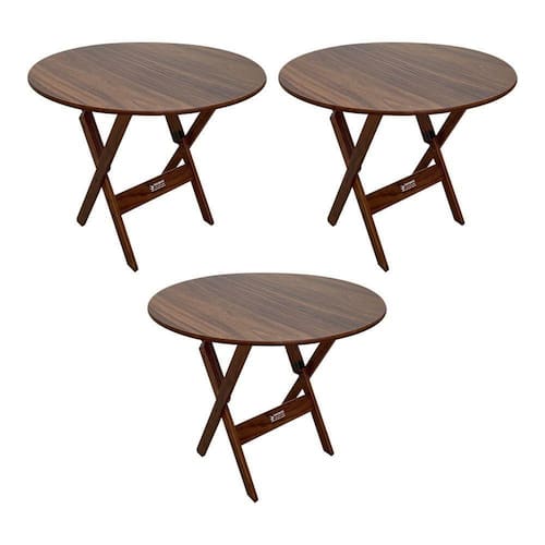 Kit 3 Mesas Dobráveis De Madeira Redonda 90cm Imbuia - TarimatãA Mesa redonda dobrável é ideal para bares, restaurantes, estabelecimentos, áreas de lazer e também para sua casa. Em madeira maciça tornando resistente e durável. Seu design permite ser encaixado em qualquer ambiente, trazendo um toque a mais para seu estabelecimento. Além de sua durabilidade, o que lhe trará conforto para servir seus clientes. Por ser dobrável torna-se mais fácil guardar, manusear e limpar o produto.CARACTERÍSTICASTipo: Mesa DobrávelModelo: RedondoCor: ImbuiaDIMENSÕES DA MESAAltura: 77cmAltura fechado: 98cmDiâmetro: 90cmAtenção: EVITE USAR PRODUTOS ABRASIVOS E QUÍMICOS PARA LIMPEZA DO PRODUTO, aconselha-se o uso de pano umedecido para melhor conservação; mantenha o produto fora de chuva e sol constantes.ATENÇÃOIMAGENS MERAMENTE ILUSTRATIVAS REALIZADO EDIÇÃO, PODENDO HAVER UMA PEQUENA VARIAÇÃO DE COR DEPENDENDO DE CADA TELA OU MONITOR.Kit 3 Mesas DobrÃveis de Madeira Redonda 90cm Imbuia