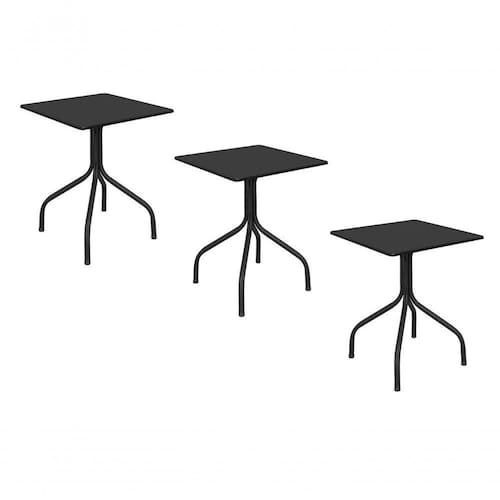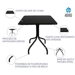 Kit 3 Mesas Moema 70x70 Para Sorveteria Restaurante Preta Base Preta Mesa Moema 70 x 70 A Mesa Moema foi projetada para garantir praticidade e facilidade para aproveitar o melhor do seu espaço. Com design moderno e atraente, este jogo de mesa atende a ambientes compactos como sacadas, varandas, apartamentos e também diversos tipos de estabelecimentos comerciais como sorveterias, bistrôs, lanchonetes, clubes, casas de sucos e estabelecimentos do ramo alimentício em geral. Compacta, lhe permite organizar o espaço propiciando acomodação confortável e otimização do layout. Você ainda poderá contar com a resistência da base de aço com pintura epóxi eletrostática que confere durabilidade e praticidade na limpeza. Além disso, é composta por duas peças encaixáveis, o que facilitam seu manuseio e montagem, conferindo também maior estabilidade à peça. Seu tampo em MDF de 15mm é tratado para ser resistente à umidade, protegendo a madeira e possibilitando seu uso também em ambientes externos. Leve, permite que você modifique o ambiente com facilidade para melhor atender à qualquer tipo de demanda. Seu design elegante e sutil permite que ela harmonize com vários modelos de cadeiras, adaptando facilmente o ambiente para o seu estilo.