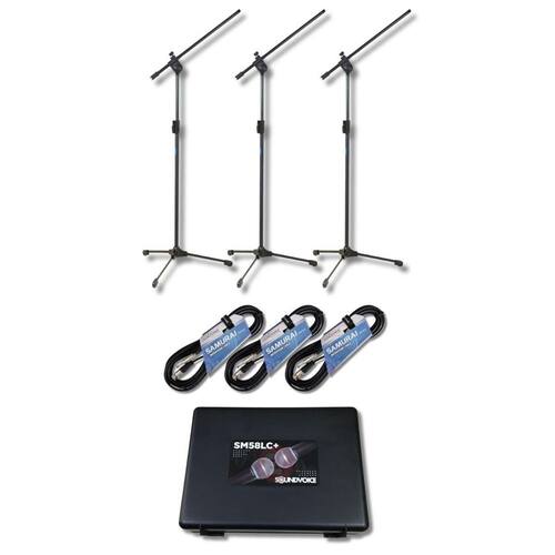 Kit 3 Microfone SM58LC + 3 XLR x P10 5m e 3 Pedestal de Microfone TPS