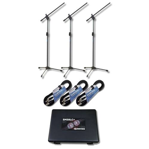 Kit com 3 Microfones SM58LC+ com Case + 3 Cabos XLR x XLR 5m e 3 Pedestal TPS ASK