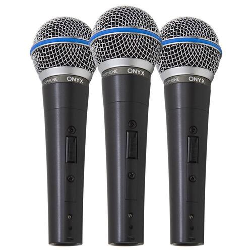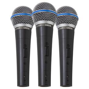 Kit de 3 Microfones TK-58C com fio Onyx, produzido em liga e zinco é um microfone durável, com sistema de microfone dinâmico e ótimo custo benefício. É um modelo unidirecional (cardioide) dinâmico, altamente eficaz para uso geral. Testado e aprovado por profissionais do ramo. Aplicações: Palestras, palcos e estúdiosEspecificações- Marca: Onyx- Tipo: Com Fio- Modelo: TK-58C- Corpo de liga de zinco- Filtro anti puff- Chave on-off- Conector XLR- Impedância: (1 kHz) 250 ohms 30%- Sensibilidade: -56,3 db (0db=1V/pa at 1kHz)- Capsula: Unidirecional- Frequência de Resposta: 50Hz ~ 15kHz- Comprimento do Cabo: 5 m- Medidas Aproximadas do Microfone: 5 x 5 x 16,5 cm- Peso Aproximado do Microfone: 250 gConteúdo da Embalagem- 03 Microfones TK-58C- 03 Cabos XLR/P10 5 metros- 03 Capas Emborrachadas- Manual de Instruções- Dimensões da Embalagem (AxLxP): 7 x 24 x 46 cm*imagens meramente Ilustrativas