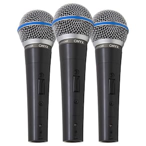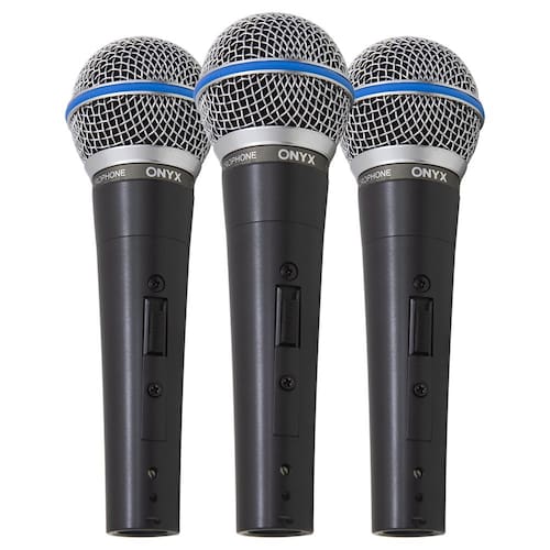Kit de 3 Microfones TK-58C com fio Onyx, produzido em liga e zinco é um microfone durável, com sistema de microfone dinâmico e ótimo custo benefício. É um modelo unidirecional (cardioide) dinâmico, altamente eficaz para uso geral. Testado e aprovado por profissionais do ramo. Aplicações: Palestras, palcos e estúdiosEspecificações- Marca: Onyx- Tipo: Com Fio- Modelo: TK-58C- Corpo de liga de zinco- Filtro anti puff- Chave on-off- Conector XLR- Impedância: (1 kHz) 250 ohms 30%- Sensibilidade: -56,3 db (0db=1V/pa at 1kHz)- Capsula: Unidirecional- Frequência de Resposta: 50Hz ~ 15kHz- Comprimento do Cabo: 5 m- Medidas Aproximadas do Microfone: 5 x 5 x 16,5 cm- Peso Aproximado do Microfone: 250 gConteúdo da Embalagem- 03 Microfones TK-58C- 03 Cabos XLR/P10 5 metros- 03 Capas Emborrachadas- Manual de Instruções- Dimensões da Embalagem (AxLxP): 7 x 24 x 46 cm*imagens meramente Ilustrativas
