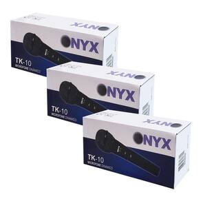 Microfone TK-10 com fio Onyx, produzido em liga e zinco é um microfone durável, com sistema de microfone dinâmico e ótimo custo benefício. É um modelo unidirecional (cardioide) dinâmico, altamente eficaz para uso geral. Testado e aprovado por profissionais do ramo. Aplicações: Palestras, palcos e estúdiosEspecificações- Marca: Onyx- Tipo: Com Fio- Modelo: TK-10- Corpo de liga de zinco- Filtro anti puff- Chave on-off- Conector XLR- Impedância: (1 khz) 700 ohms 30%- Sensibilidade: -72,3 db (0db=1V/pa at 1KHZ)- Capsula: Unidirecional- Frequência de Resposta: 85Hz a 11kHz- Comprimento do Cabo: 3 m- Medidas Aproximadas do Microfone: 5 x 5 x 18 cm- Peso Aproximado do Microfone: 100 gConteúdo da Embalagem- 3 Microfones Dinâmicos com Fio TK 10 Onyx*imagens meramente ilustrativas