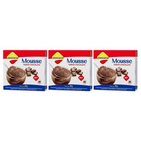 Kit 3 Mousse Sabor Chocolate 25g - Lowçucar O Mousse Sabor Chocolate 25g é a escolha perfeita para quem busca uma sobremesa deliciosa, leve e equilibrada. Especialmente desenvolvido para dietas com ingestão controlada de açúcares, ele combina a intensidade do cacau com a cremosidade característica de um bom mousse, entregando sabor indulgente sem abrir mão do cuidado com a alimentação. Com preparo rápido e prático, cada embalagem rende 6 porções de 50 g, tornando-se ideal para compartilhar em família ou servir como sobremesa especial no dia a dia. Além de saboroso, é enriquecido com proteínas e fibras, contribuindo para mais e equilíbrio nutricional. Destaques do Produto Sabor intenso e cremoso de chocolate Zero adição de açúcares, adoçado com sucralose e acessulfame de potássio Fonte de proteínas e fibras alimentares Rendimento: até 6 porções 50 g cada Sem glúten Embalagem prática de 25 g Sugestões de Consumo Perfeito como sobremesa após as refeições Pode ser servido em taças individuais ou em refratários familiares Ótimo para ocasiões especiais ou no dia a dia Uma opção saudável para quem busca um doce equilibrado Ingredientes Cacau em pó, proteína concentrada do soro de leite, espessantes goma carragena, goma xantana e alginato de sódio , edulcorantes sucralose e acessulfame de potássio e aromatizantes. Alérgicos: contém derivados de leite e soja. Contém lactose. Não contém glúten. Modo de Preparo No liquidificador, adicione 200 ml de leite desnatado e 100 g de creme light Acrescente o conteúdo do pacote 25 g Bata por aproximadamente 5 minutos até obter textura espessa e cremosa Distribua em taças ou refratário e leve à geladeira até firmar Informação Nutricional porção de 9,2 g - aproximadamente 1 colher de sopa Valor Energético: 34 kcal 2% VD Carboidratos: 4 g 1% VD Açúcares Totais: 0,3 g Açúcares Adicionados: 0,2 g Proteínas: 1,6 g 3% VD Gorduras Totais: 1,2 g 2% VD Gorduras Saturadas: 0,9 g 5% VD Gordura Trans: 0 g Fibras Alimentares: 1,8 g 7% VD Sódio: 26 mg 1% VD Informações do Produto Peso líquido: 25 g Rendimento: 6 porções 50 g cada Validade: 18 meses a partir da data de fabricação Modo de Armazenar Conservar em local seco, fresco e protegido da luz solar. Após aberto, manter a embalagem bem fechada para preservar a qualidade. Marca: Não Informado
