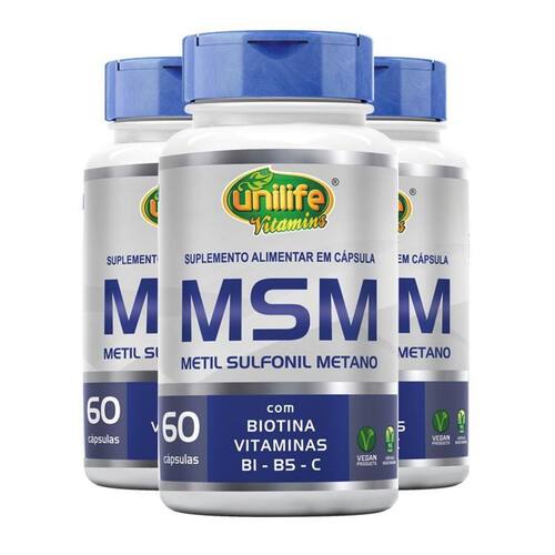 Kit 3 Msm Metil Sufonil Metano Biotina Unilife 60 Cap