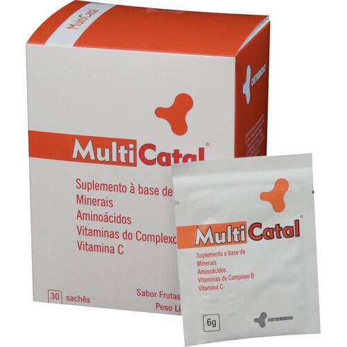 Kit 3 multicatal quelato coenzima q10 coco zinco 3x30sachesMulticatal Multivitamínico Suplemento alimentar à base de minerais, quelatos, aminoácidos, vitaminas, coenzima q10 e óleo de coco. Multicatal funciona como suplemento, complementando a alimentação com nutrientes comprovadamente benéficos à saúde. Totalmente isento de gorduras totais, gorduras saturadas, gorduras trans, sódio, glúten, lactose e corantes.Para quem é indicado:É indicado para adultos em geral.Ingredientes:Carbonato de cálcio e magnésio, glutamina, arginina, isoleucina, leucina, valina, metionina, óleo de coco cocos nucifera l. , taurina, tirosina, vitamina c, bisglicinato de zinco, coenzima q10, vitamina b3, bisglicinato de manganês, vitamina b5, molibdato de sódio, selenito de sódio, bisglicinato de cobre, vitamina b2, vitamina b6, vitamina b1, picolinato de cromo, vitamina b9, iodeto de potássio, vitamina b8, vitamina b12, sucralose, polidextrose qsp., aroma de frutas vermelhas qs.Informação nutricionalPorção de 6g 1 sachê