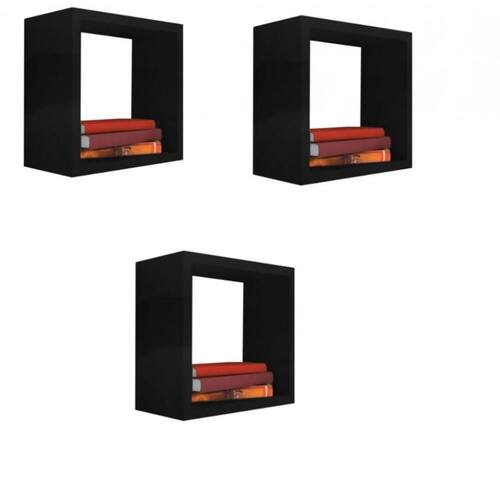 Kit 3 Nicho Decorativo 35x35x20 Cm Preto Em Mdf [F031]