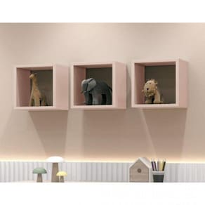 Kit 3 Nichos Juju Reller Móveis Rosa fosco. O Kit de Nichos Trilho Juju é composto por 3 nichos, um acessório versátil, delicado e completo, ele é Ideal para organizar ou decorar o quartinho do seu bebe. O tamanho é 30x30 e 20cm de profundidade. Marca: Móveis Reller Ean: 7908506211803