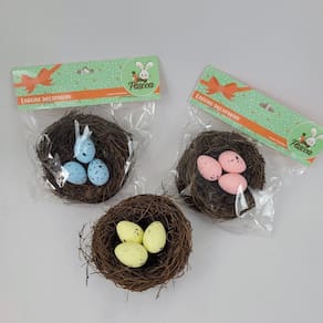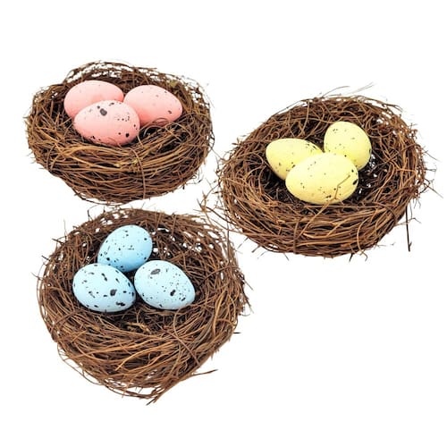 Kit 3 Ninho Decorativo Com 3 Ovos De Páscoa Enfeite Páscoa kit com 3 Ninhos de Cipó com Ovos Decorativos - Elegância e Sofisticação para Sua Decoração