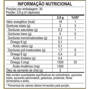 Cada porção de 2,8 g 4 cápsulas contém 2 g de óleo de chia, dos quais 1,3 g são ácido linolênico Ômega-3 e 0,4 g são ácido linoleico Ômega-6 .