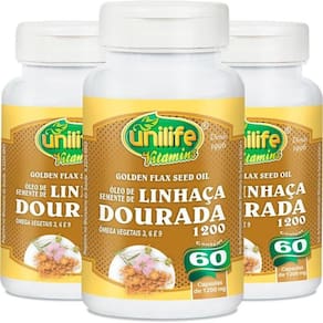 KIT 3 ÓLEO DE SEMENTE DE LINHAÇA DOURADA 1200MG UNILIFE 60 CÁPSULAS
