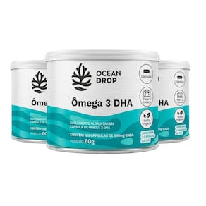 Kit 3 Ômega 3 DHA 460mg Ocean Drop Vegano - 120 Cápsulas O Ômega 3 DHA 460mg da Ocean Drop é um suplemento alimentar vegano, formulado para fornecer ácidos graxos essenciais provenientes de fontes vegetais. Este produto é ideal para quem busca os benefícios do DHA. Registro: - Produto registrado: M.S Nº 6.2234.0092 Descrição do Produto: - Contém ácido docosahexaenoico DHA obtido do óleo de alga Schizochytrium sp. - vegetariana, com umectante glicerina e água. - Não contém glúten. Modo de uso: - Sugere-se a ingestão de 2 cápsulas ao dia ou conforme recomendação profissional. - Ingerir com líquido. Ingredientes: DHA ácido docosa-hexaenoico extraído de algas marinhas Cápsula: hidroxipropilmetilcelulose HPMC , glicerina vegetal e água purificada Contraindicações: - Indicado para pessoas acima de 19 anos. - Este produto não é um . Informações Adicionais: Não contém glúten Livre de lactose Produto 100% vegano
