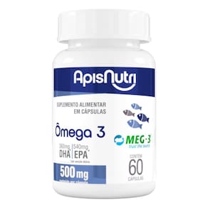 Kit 3 ômega 3 epa dha apisnutri 60 cápsulas Sobre o produto É um suplemento à base de óleo de peixe, contendo epa e dha, considerado uma 'gordura boa' e essencial, pois não pode ser produzido naturalmente pelo organismo, devendo, portanto, ser obtido através da alimentação e/ou suplementação. O selo meg-3 garante a qualidade das matérias-primas utilizadas na fabricação do suplemento. O óleo de peixe com esta certificação é altamente purificado e também é rico em epa e dha, os principais tipos de ácidos graxos ômega 3. Modo de usar Ingerir 06 seis cápsulas ao dia. Recomendação de uso: 19 dezenove anos ou acima. Ingredientes Ingredientes: óleo de peixe e antioxidante: acetato de dl-alfa-tocofero. Cápsula: gelatina. Alérgicos: contém derivados de peixe. Não contém glúten. este produto não é um . não exceder a recomendação diária de consumo indicada na embalagem. mantenha fora do alcance de crianças. este produto não deve ser consumido por gestantes, lactantes e crianças. Manter a embalagem bem fechada em local seco e fresco. Não expor à luz solar. Consumir em até 30 dias após aberto. Produto dispensado de registro conforme rdc 240/2018. Apresentação Classificação: suplemento alimentar de óleo de peixe em cápsulas quantidade de cápsulas: 60 cápsulas de 500 mg peso líquido: 30g Marca: Não Informado Ean: 7908609545928