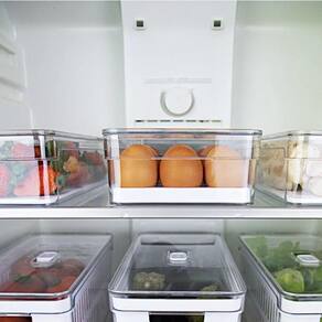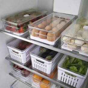 1X Organizadores Porta Ovos Com Tampa Caixas De Armazenamento Para Ovos 18 UN 1X Organizador para Geladeira Clear Fresh com Cesto Legumes Frutas e Verduras 1X Organizador De Geladeira 5 Litros